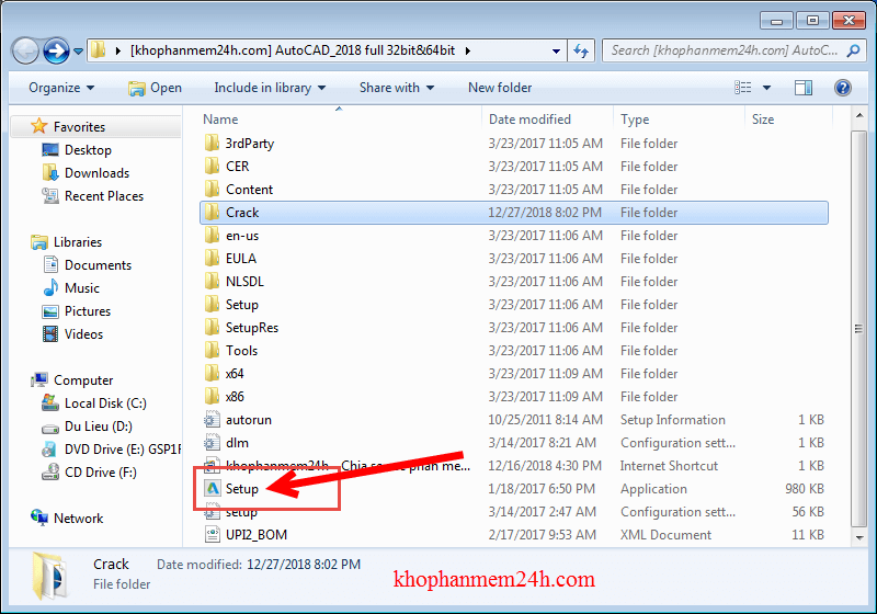 Bước 1: Sau khi tải autocad 2018 32bit & 64bit bạn tiến hành giải nén rồi Mở file cài đặt và chọn đường dẫn để cài đặt.
