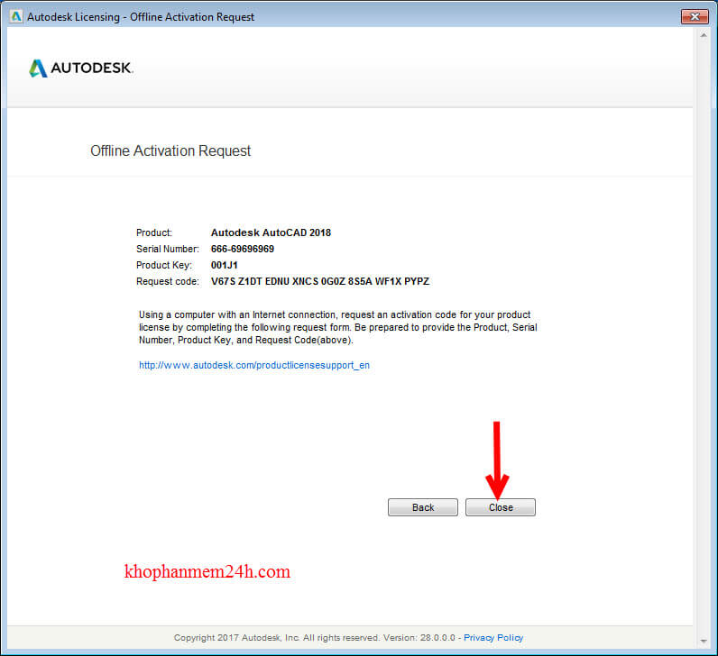 - (1) tại hộp thoại Autodesk Licensing Copy đoạn code “Request code”