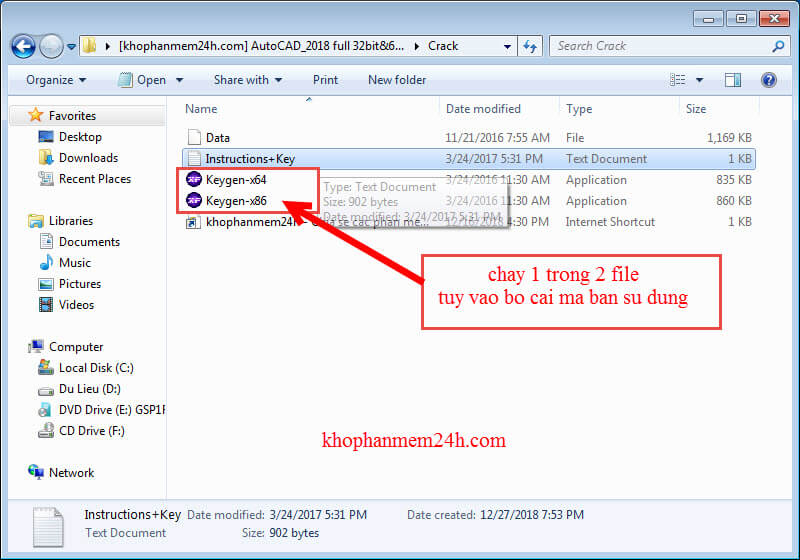 Bước 7: Mở file crack autocad 2018 xf-adsk2018_x64 (win 64bit) hoặc xf-adsk2018_x86 (win 32bit) Running as administrator và làm theo các bước dưới đây.