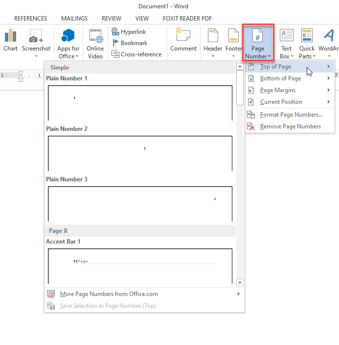 Lựa chọn và kiểm tra vị trí bạn muốn đánh số trang trong Word 2013. Số trang sẽ tự động điền vào từng trang trong tài liệu, với vị trí chính xác mà bạn đã lựa chọn trong hộp thoại.