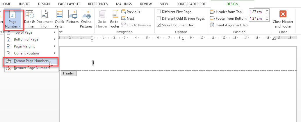Bước sau đó, chọn phần Header & Footer. Sau đó nhấp vào tùy chọn Format Page Numbers (Định dạng số trang) …