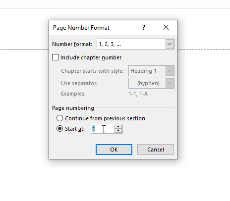 Tùy chọn Start at sẽ là số trang bạn muốn bắt đầu cho văn bản hiện tại. Ở đây, bạn có thể nhập số bất kỳ.