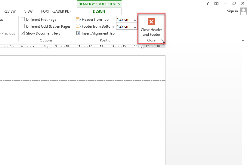 Sau khi đã hoàn thành, lựa chọn tắt các dòng Header hoặc Footer trong tài liệu ấn Close Header & Footer (Đóng Header và Footer).