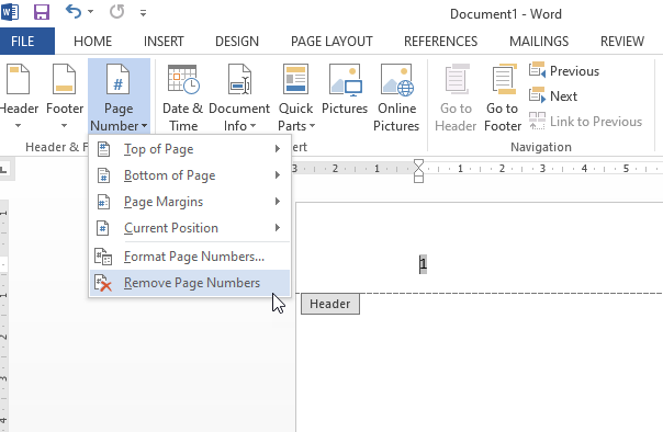 Nếu có mong muốn xóa các trang được gõ tự động trong Word 2013. Chọn Page Number (Số trang). Sau đó chọn Remove Page Numbers (Xóa số trang).