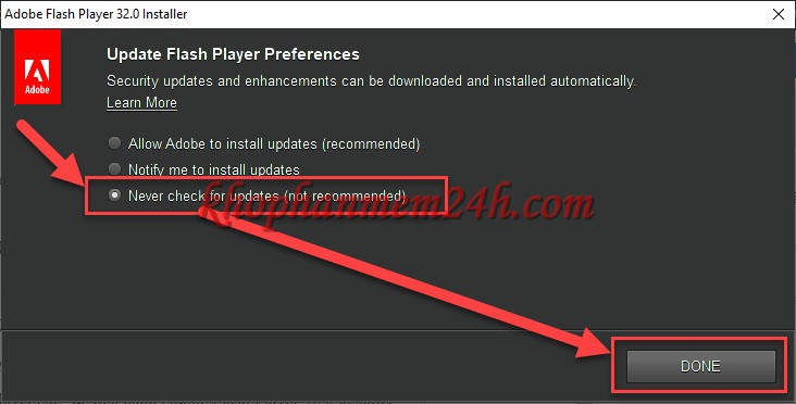 – Allow Adobe to install updates (recommended): Cho phép tự động cài Adobe Player khi có phiên bản mới