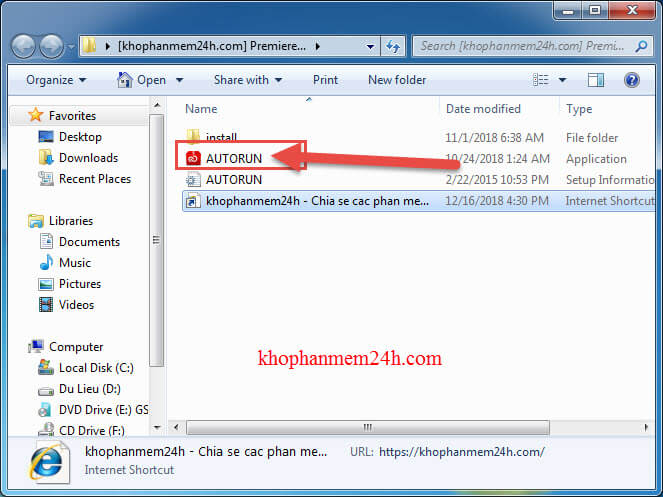 Sau khi Download Premiere về máy, bạn tiến hành giải nén bằng winrar (nên là bản 5.6 trở lên) sau đó click đúp chuột vào file “AUTORUN“