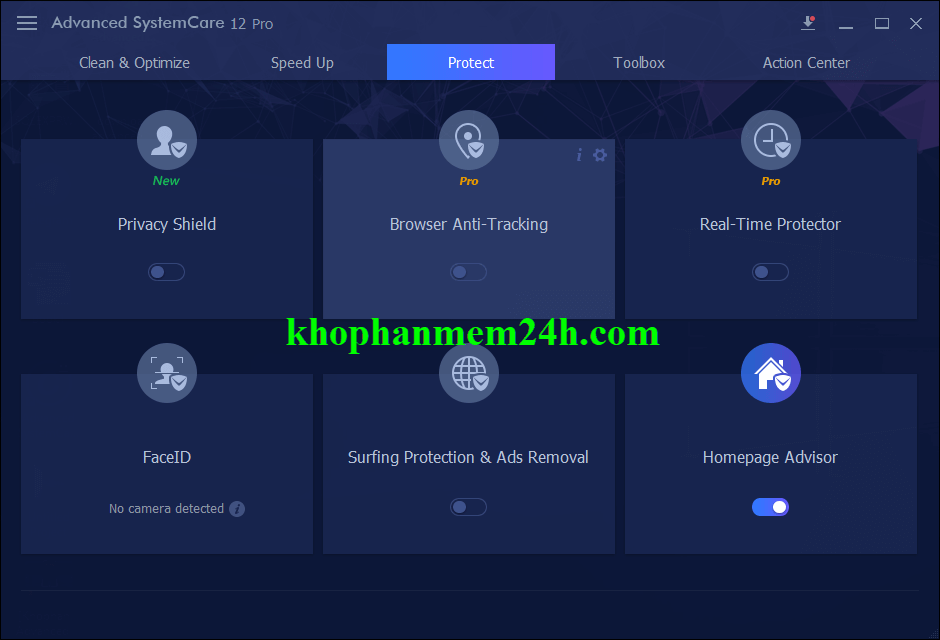 Phiên bản Key Advanced SystemCare 12 Pro cũng tối ưu hệ thống hóa Bảo vệ Lướt sóng & Bảo vệ Quảng cáo, FaceID, Bảo vệ Thời gian thực và Cố vấn Trang chủ để bảo vệ máy tính của bạn khỏi các cuộc tấn công khai thác tiền điện tử, các mối đe dọa trực tuyến, quảng cáo gây phiền nhiễu, truy cập trái phép, sửa đổi trang chủ và công cụ tìm kiếm, v.v. .