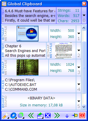 Global Clipboard (GC) đặc biệt hữu hiệu khi bạn đang thao tác trên những văn bản phức tạp, đòi hỏi phải nhớ và chèn vào nhiều văn bản, hình ảnh, đồ thị, bảng biểu, kết nối… Với những người chuyên xử lý đồ họa hoặc âm thanh thì GC cũng tỏ ra hữu dụng không kém khi nó có khả năng lưu lại trong clipboard hàng loạt hình ảnh hoặc đoạn âm thanh mà người dùng đã “copy” hoặc “cut”.
