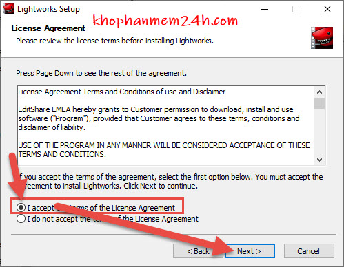 Bước 5: Tích vào ô “I accept…” rồi chọn “Next“