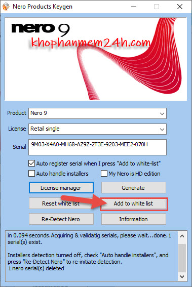 Bước 1: chạy file “Keymaker.Nero.9.4.26.0 v5.55.exe“