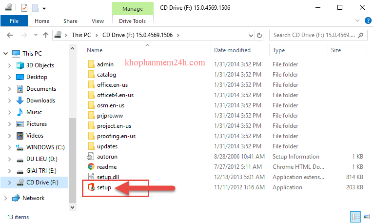 Bước 1: Sau khi tải ms project pro 2013 về máy bạn tiến hành mount ổ đĩa ảo bằng phần mềm ultraiso (bạn cũng có thể giải nén project bằng winrar nhé)