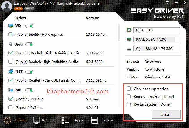Wandriver 7.17 hay còn gọi là Easy driver pack 7 là 1 bộ driver đầy đủ tính năng thu gọn trong 1 công cụ. Nó chứa tất cả các loại driver chipset, audio,network, vga… của nhiều hãng sản xuất để phù hợp cho các dòng mainboard pc và laptop. Đây là bộ cài driver cho các máy tính windows của Microsoft phổ thông nhất. Bộ driver này được hầu hết các kỹ thuật IT trong và ngoài nước sử dụng nhiều nhất. Và mình không ngoại lệ 🙂
