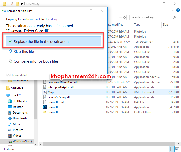 Truy cập đường dẫn “C:Program FilesEasewareDriverEasy” rồi Paste(dán) vào là đc nhé. Nếu có hỏi ghi đè “Copy and Replace” hay không thì nhấn Yes để đồng ý nhé mọi người.