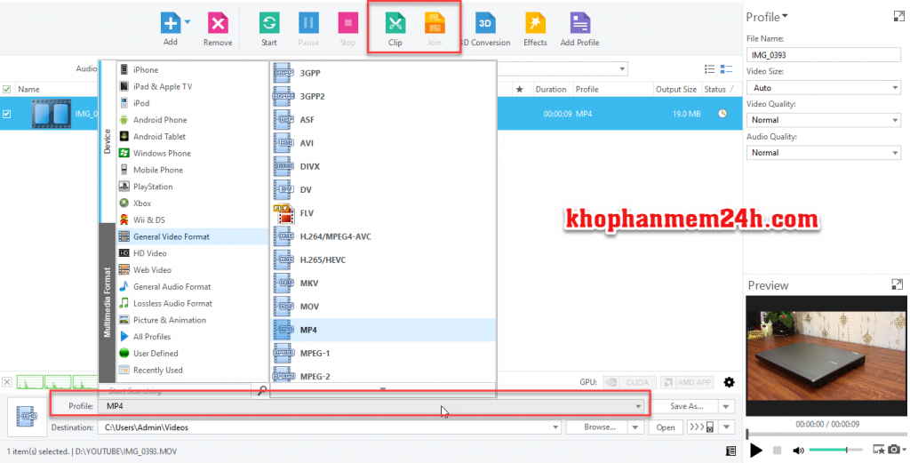 - Chuyển đổi giữa các định dạng video thông dụng như AVI, MPEG, WMV, DivX, MP4, H.264/MPEG-4 AVC, RM, MOV, XviD, 3GP, FLV, giúp bạn chuyển đổi AVI sang MPEG, MKV sang AVI, MKV sang MPEG;